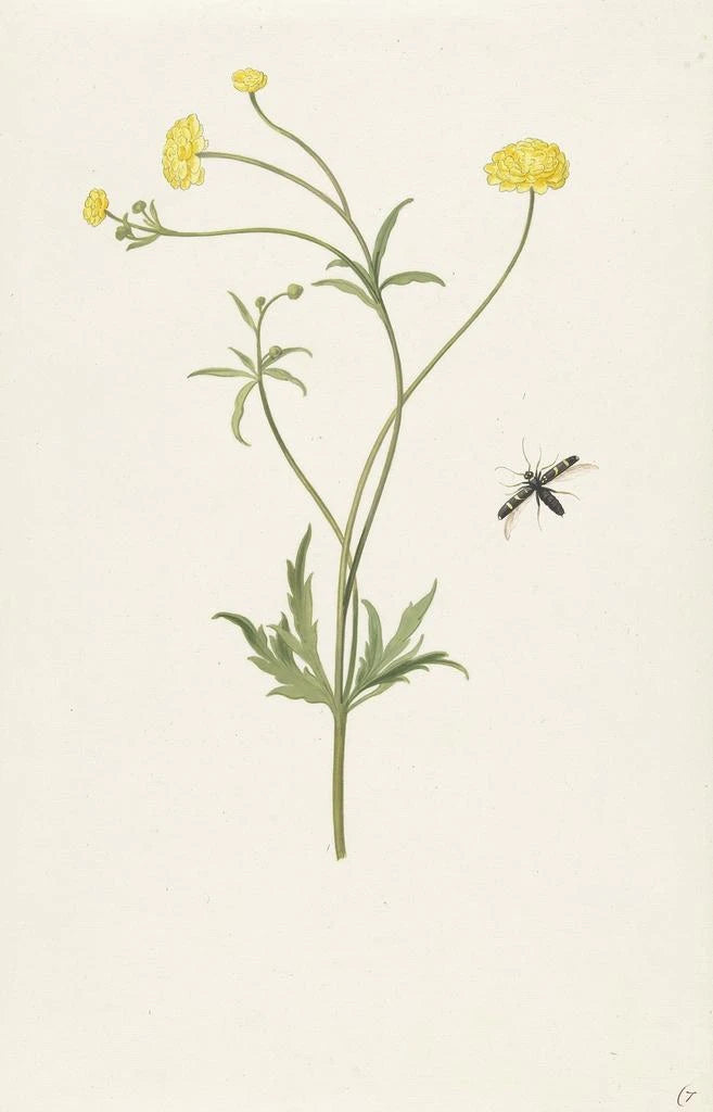 Pieter Withoos, actif au XVIIe siècle, est reconnu pour ses compositions de fleurs et de nature morte, qui reflètent l'esthétique baroque de son époque. Influencé par les traditions flamandes, il a su capturer la richesse des couleurs et la complexité des formes avec une précision impressionnante. Ses œuvres, souvent chargées de symbolisme, témoignent d'une fascination pour la nature et la vie éphémère. La Renoncule jaune double et insecte est un parfait exemple de son talent, alliant technique et sensibilité, tout en s'inscrivant dans une tradition artistique qui valorise la beauté du quotidien.