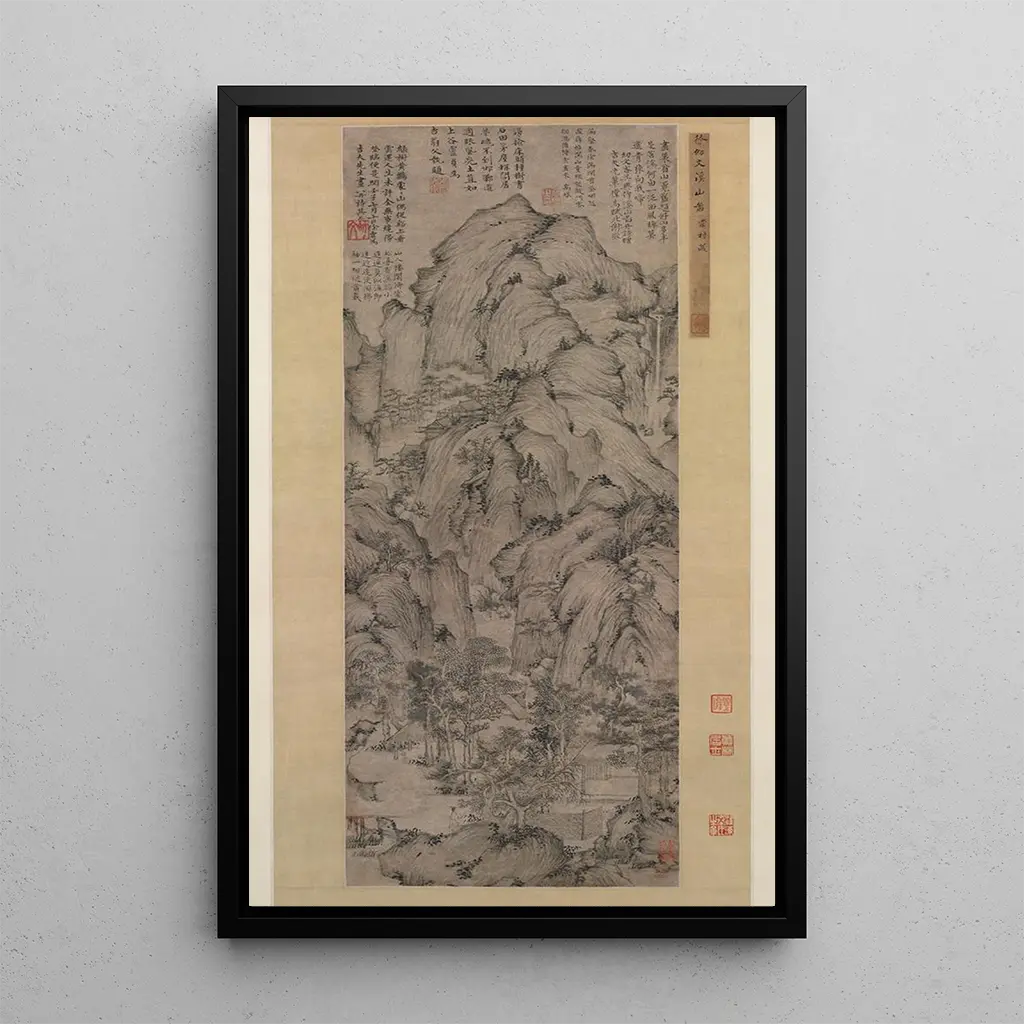 "Ruisseaux et montagnes" autorstwa Xu Ben to dzieło, które wywołuje uczucie pokoju i harmonii z naturą. Za pomocą płynnych pociągnięć pędzla artysta przedstawia pejzaż, w którym woda spokojnie płynie pomiędzy majestatycznymi górami. Odmiany zieleni i błękitu przenikają się, tworząc spokojną, niemal medytacyjną atmosferę. Każdy element kompozycji, od migoczących strumieni po imponujące szczyty, zachęca do kontemplacji i ucieczki od codziennego zgiełku. Ten druk artystyczny przenosi widza w świat, gdzie natura panuje, oferując schronienie od codziennego chaosu.